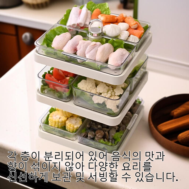 ● 다기능 다층 수납 구조로 다양한 반찬과 음식을 한 번에 깔끔하게 정리할 수 있어 주방 공간을 효율적으로 활용할 수 있습니다. ● 가정용으로 최적화된 전용 반찬 접시로, 내구성이 뛰어나고 세척이 쉬워 매일 사용해도 변형 없이 오랫동안 사용할 수 있습니다. ● 각 층이 분리되어 있어 음식의 맛과 향이 섞이지 않아 다양한 요리를 신선하게 보관 및 서빙할 수 있습니다. ● 모던한 디자인과 실용성을 동시에 갖춰 식탁 위를 더욱 세련되고 깔끔하게 연출할 수 있습니다. ● 다양한 용도로 활용 가능하여 반찬, 샐러드, 디저트 등 여러 종류의 음식을 한 번에 담아 손님 접대에도 안성맞춤입니다.